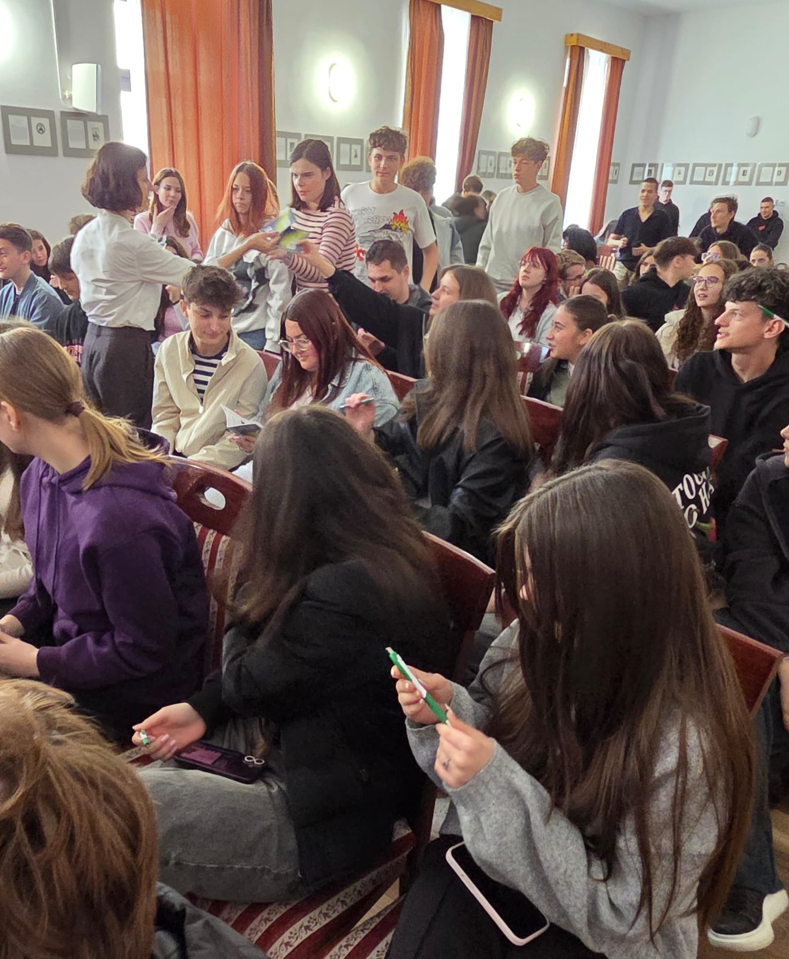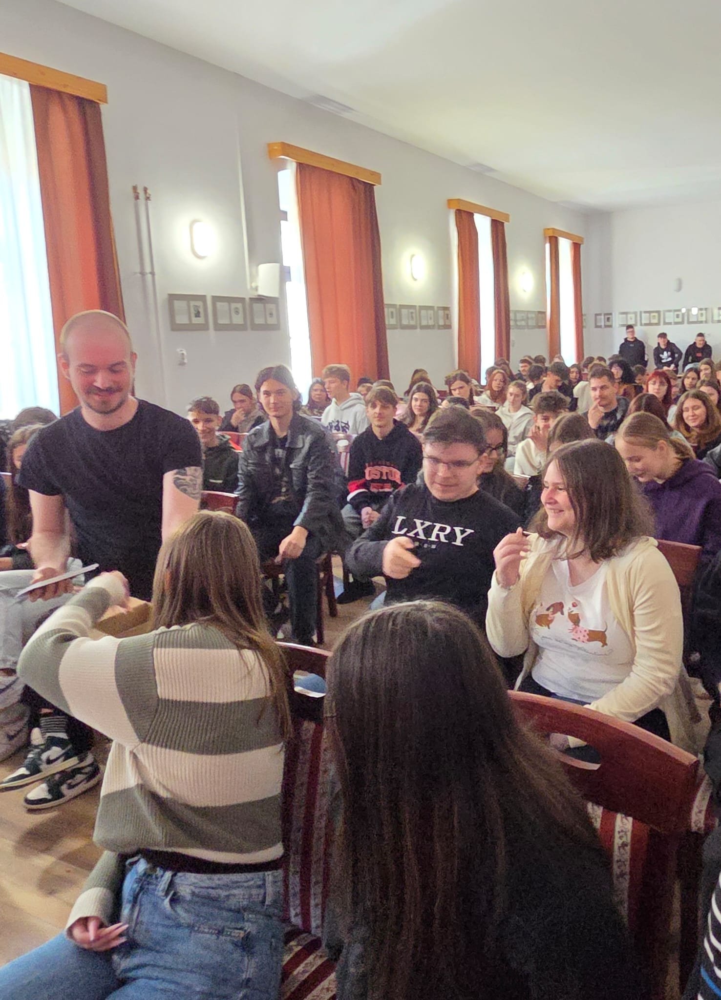 Veres Ottilia, a PKE angol szakos tanára, kreatív képeken és rövid videókon keresztül keltette fel a középiskolások érdeklődését. A diákok aktívan kapcsolódtak be a beszélgetésbe, érdekes kérdésekre válaszoltak, és közben észrevétlenül fedezték fel, mennyire sokszínű tudást kínál az angol szak.