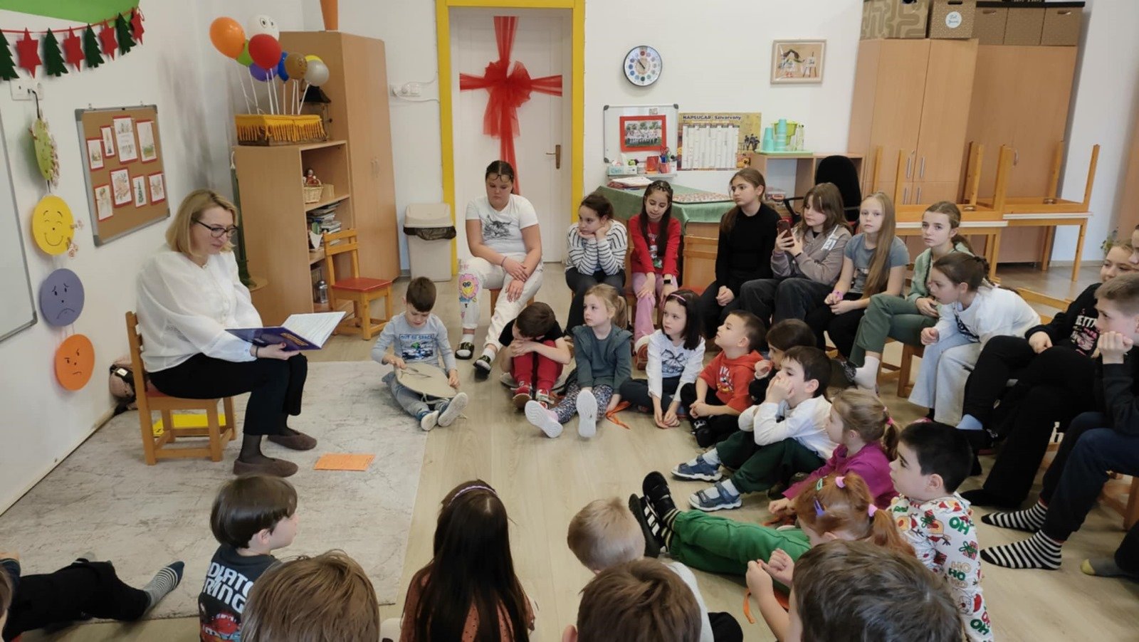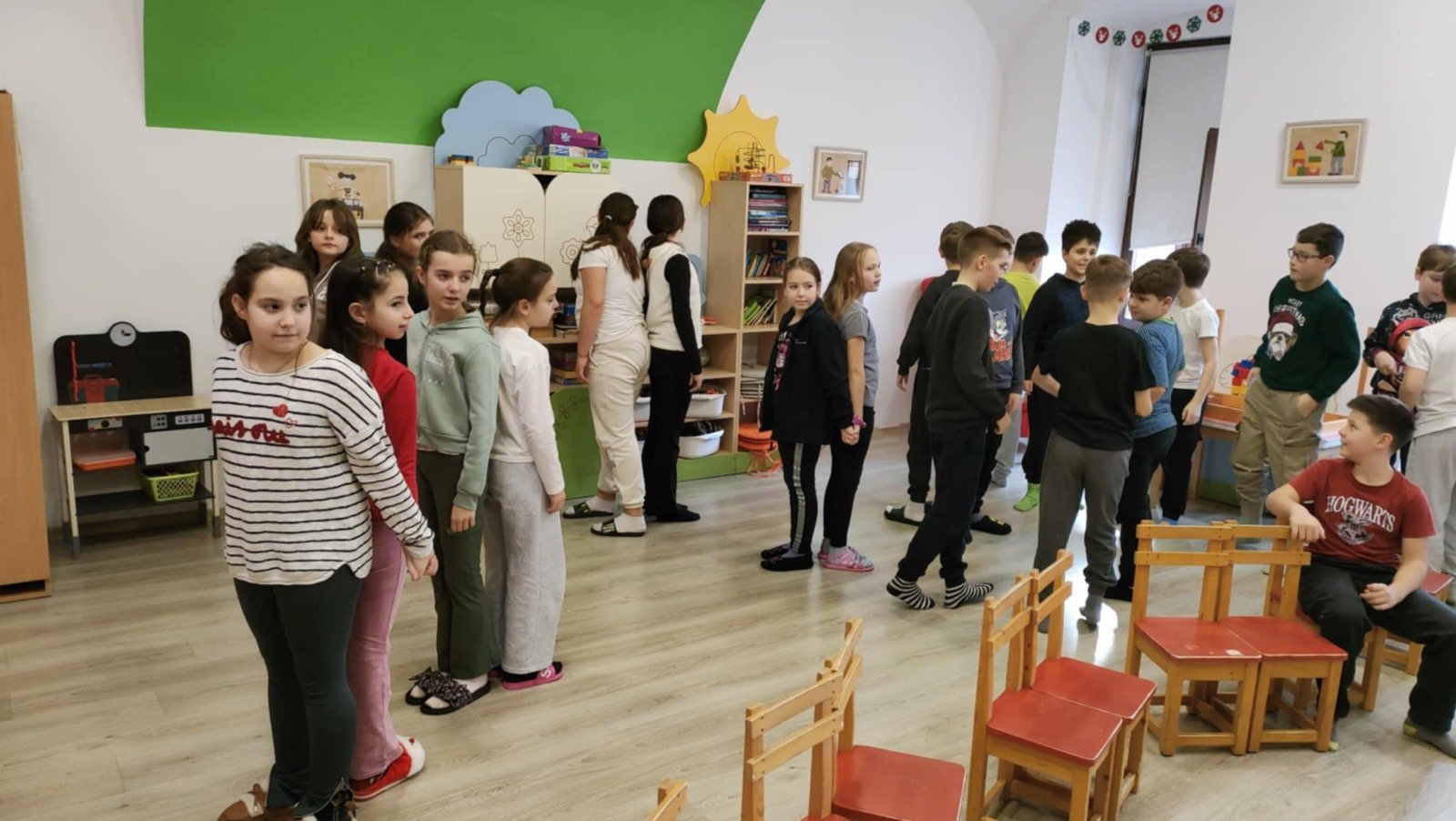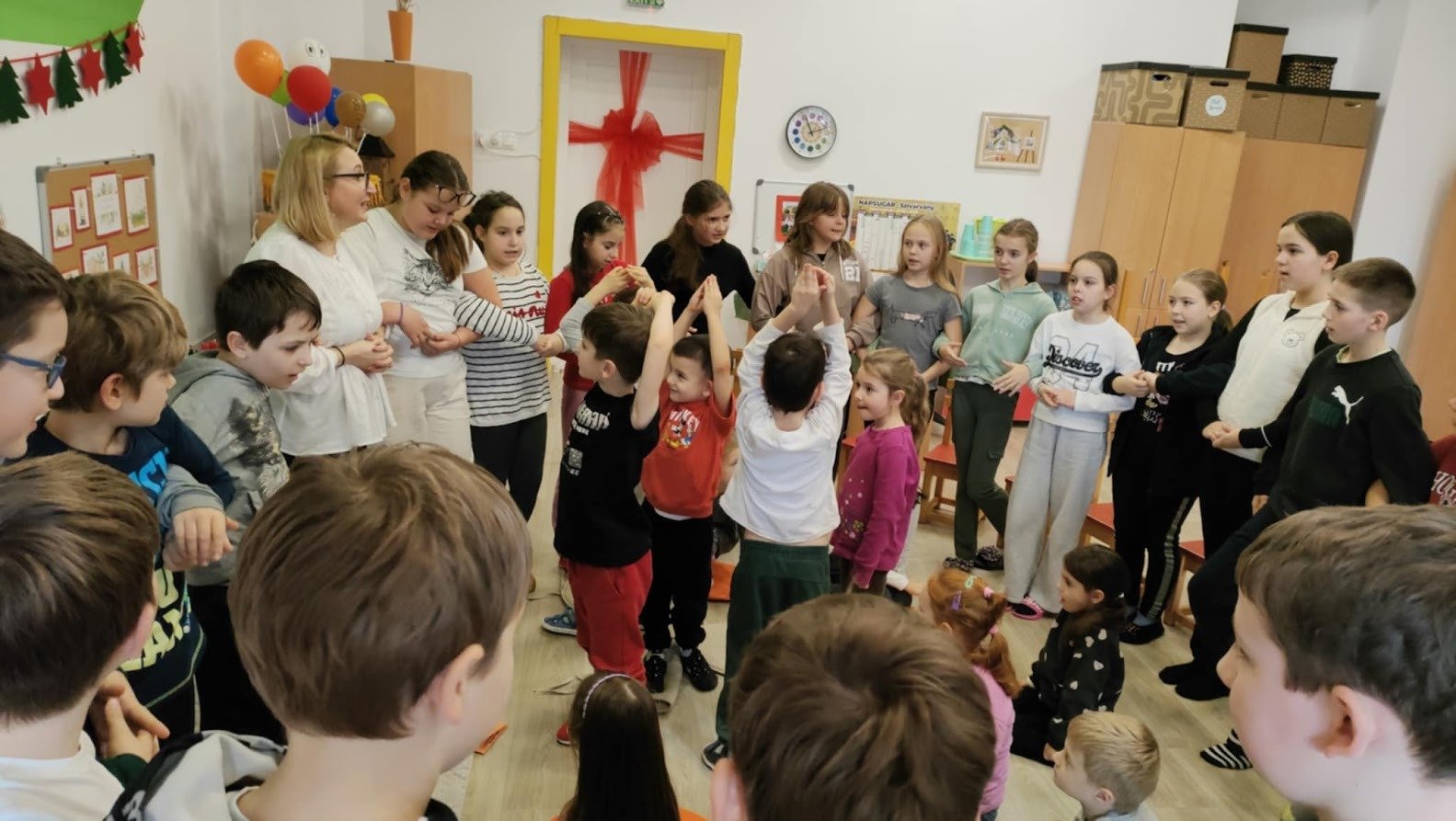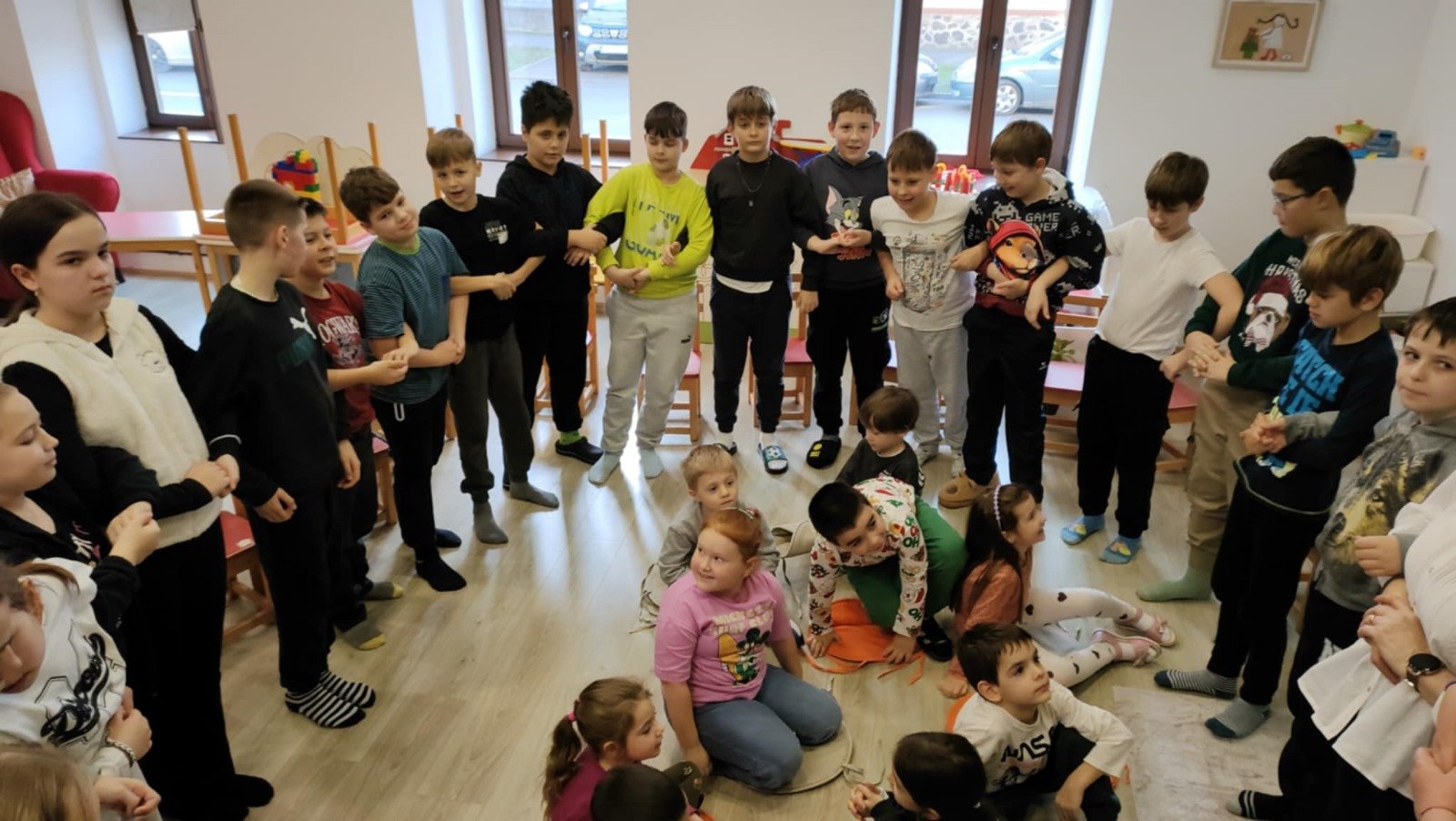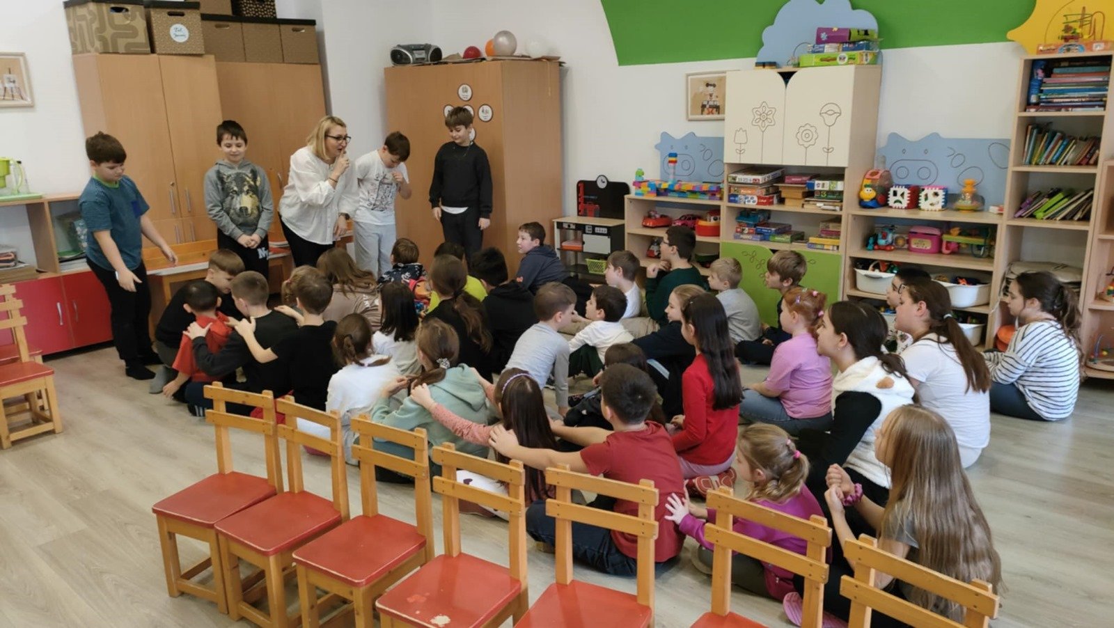 A kántálást követően a negyedikesek Mekker Melinda tanci tanítványai és a nagycsoportosok, Nagy Edit és Simon Boglárka óvónők kis tanítványai egy játékos, kalandos ünnepvárón vettek részt. Mesét hallgattak, majd a drámajáték segítségével képzeletbeli kalácsot „sütöttek”, miközben a gyermekek közösen játszottak, nevettek, és együtt hangolódtak az ünnepre. A közös élmények során természetesen alakult ki a barátságos, elfogadó légkör, amelyben minden gyermek aktív résztvevő lehetett.