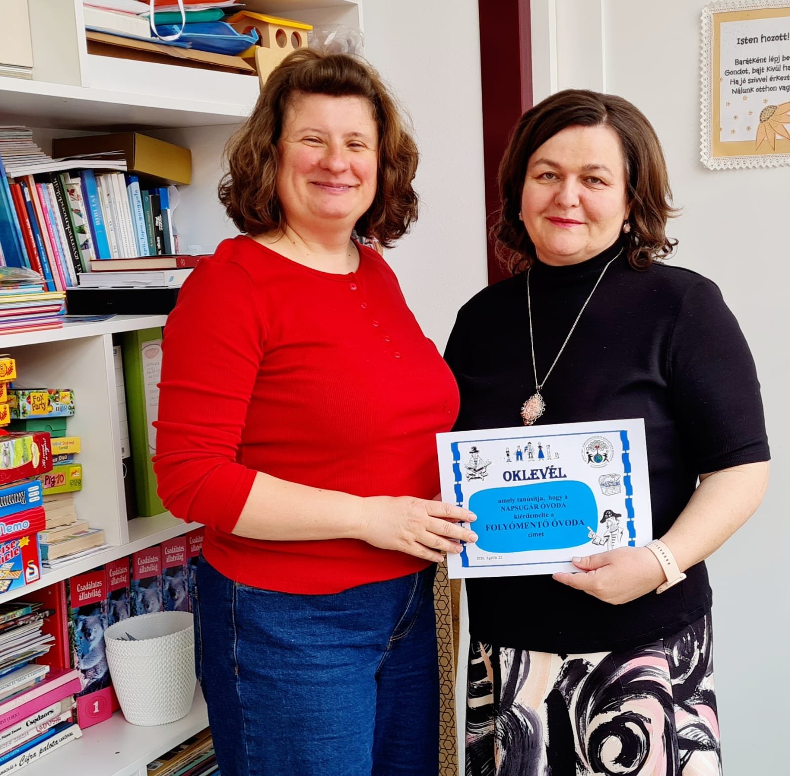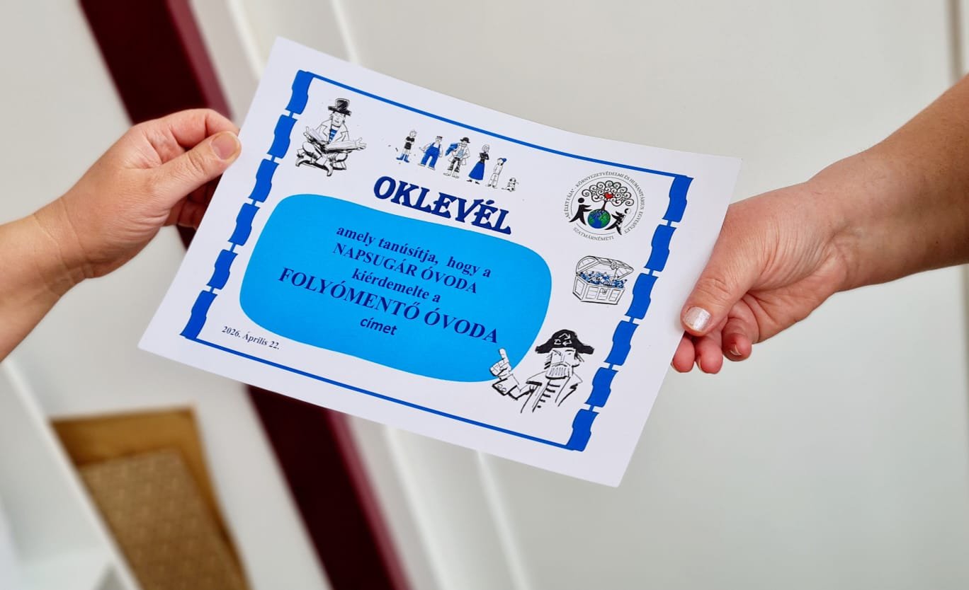 Az esemény végén Fehér Kinga, a Református Gimnázium biológia tanárnője átadta a Folyómentő óvodáknak járó oklevelet az Árva Bethlen Kata Református Óvoda óvónőinek. Bár az intézmények a projekt közepén járnak, mégis megkapták a folyómentő óvoda címet, hogy így már tudatosabban készüljenek a következő tevékenységekre.