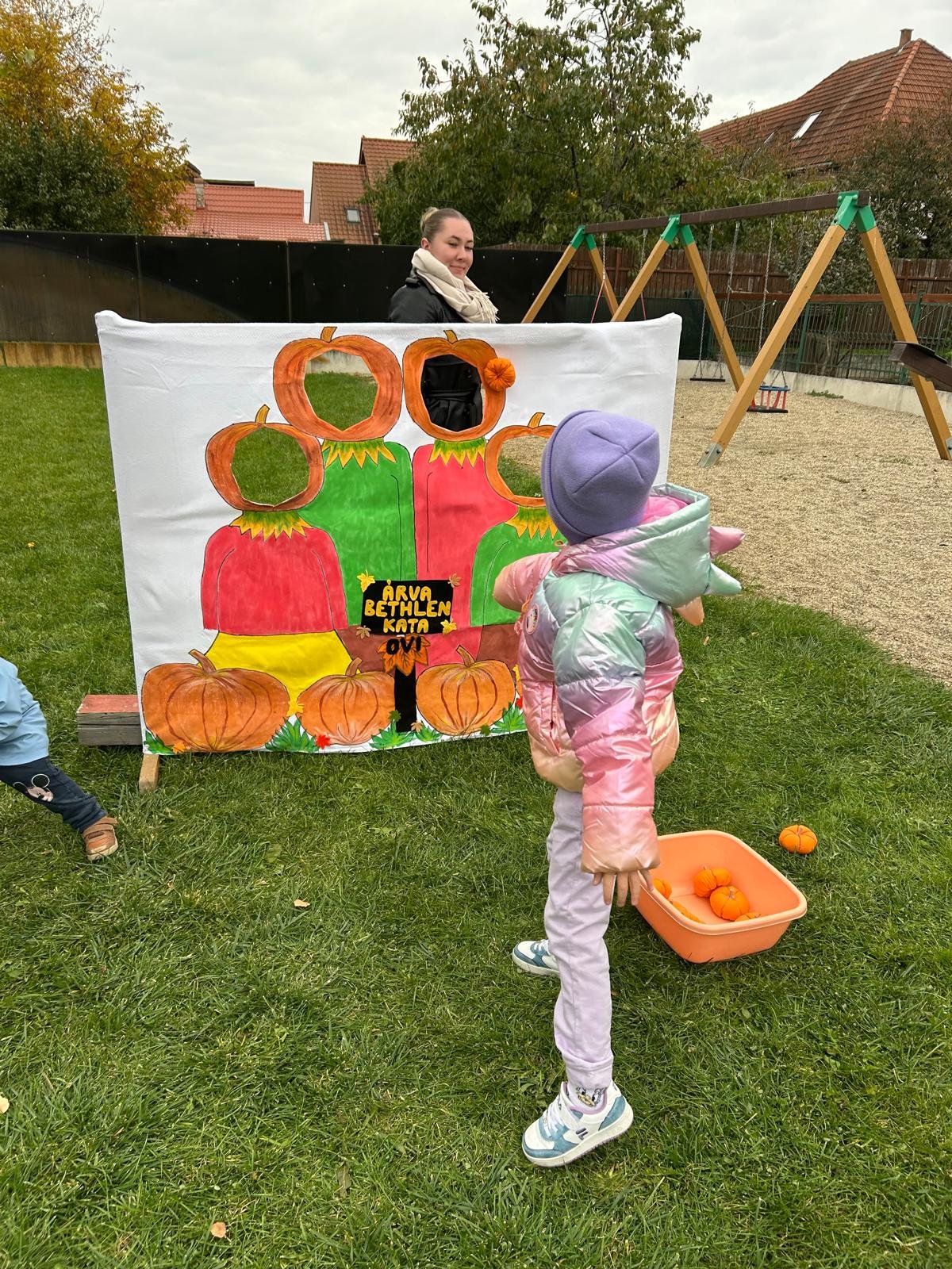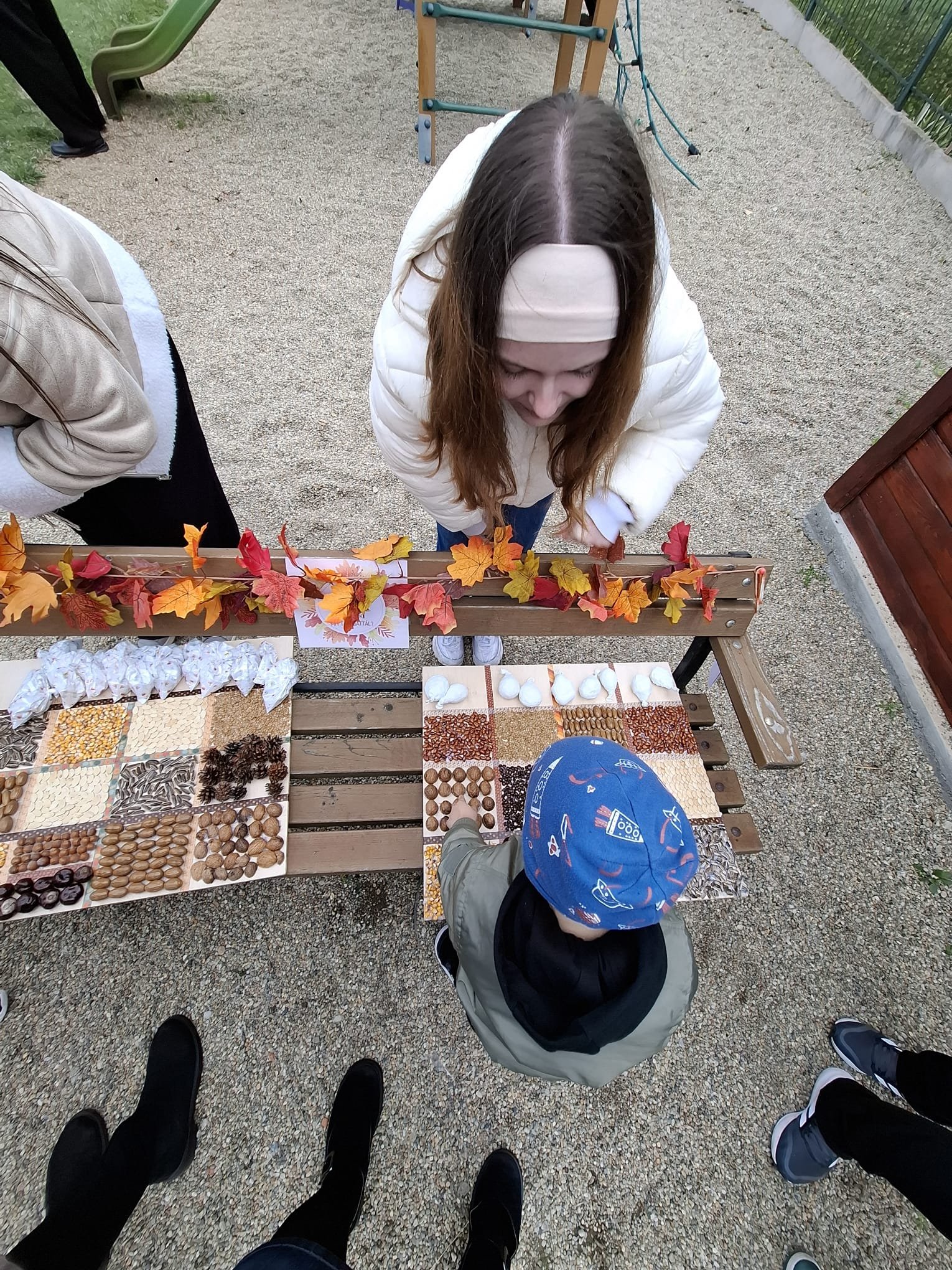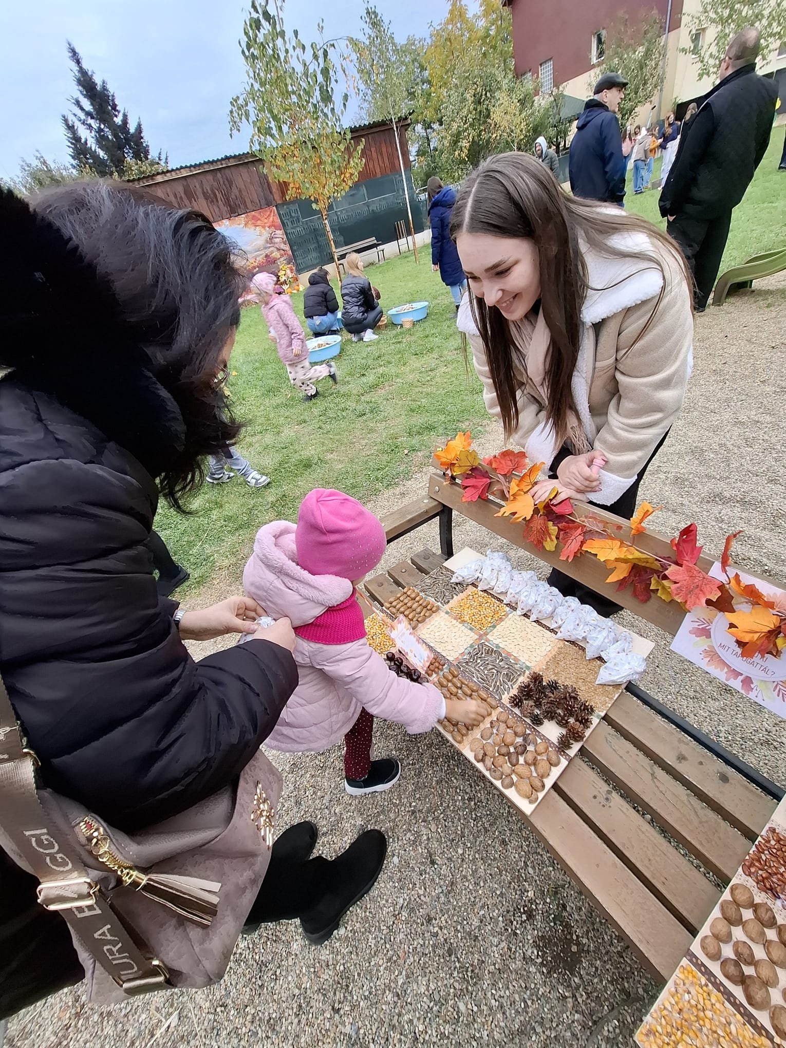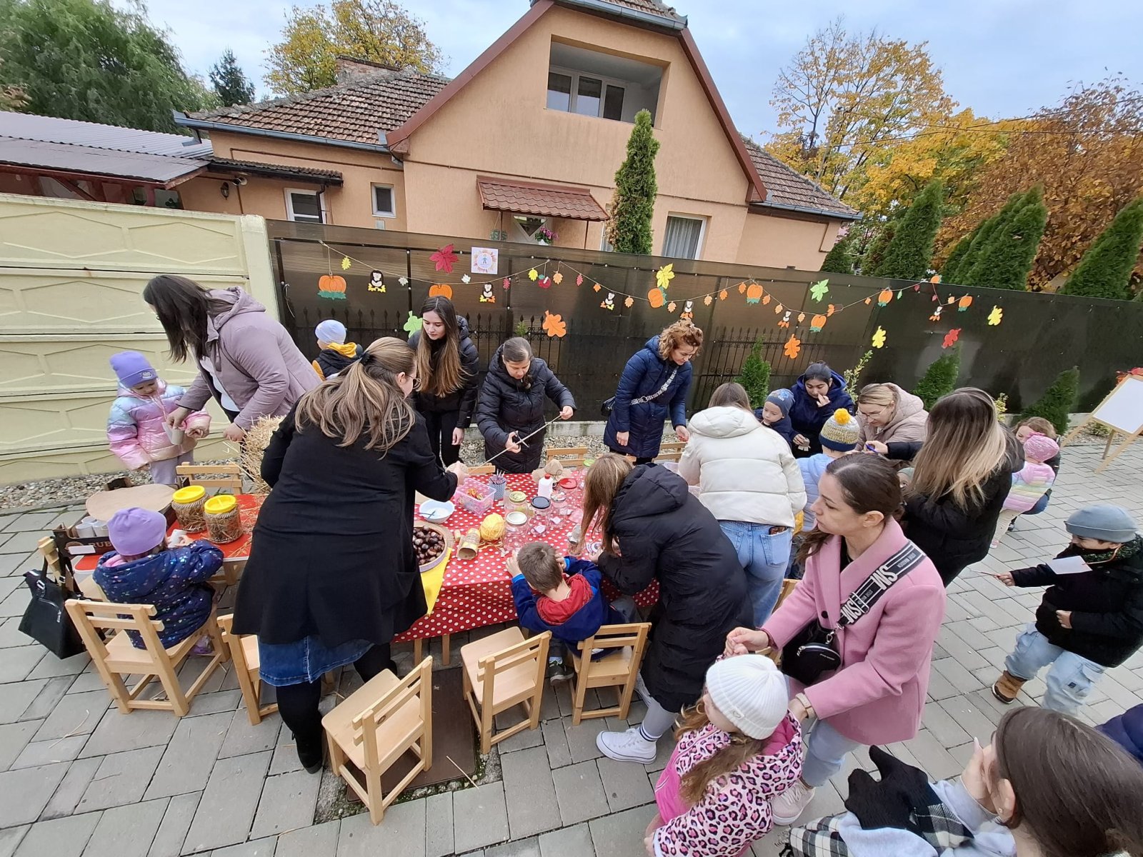 A gyerekek csillogó szemmel figyelték a Manócska Bábszínház “Pinokkió” bábelőadását, és nagy örömmel vették körül a kisállatokat a nyuszisimogatóban. A családok együtt élvezték az őszi finomságokat, miközben az udvaron játékos próbák sora várta a kicsiket: “Tökös célbadobás”, “Pókháló-játék termésekkel”, a népszerű „Találd ki, mit tapogatsz!”, valamint az „Etesd meg a mókust!” játék is nagy sikert aratott.
