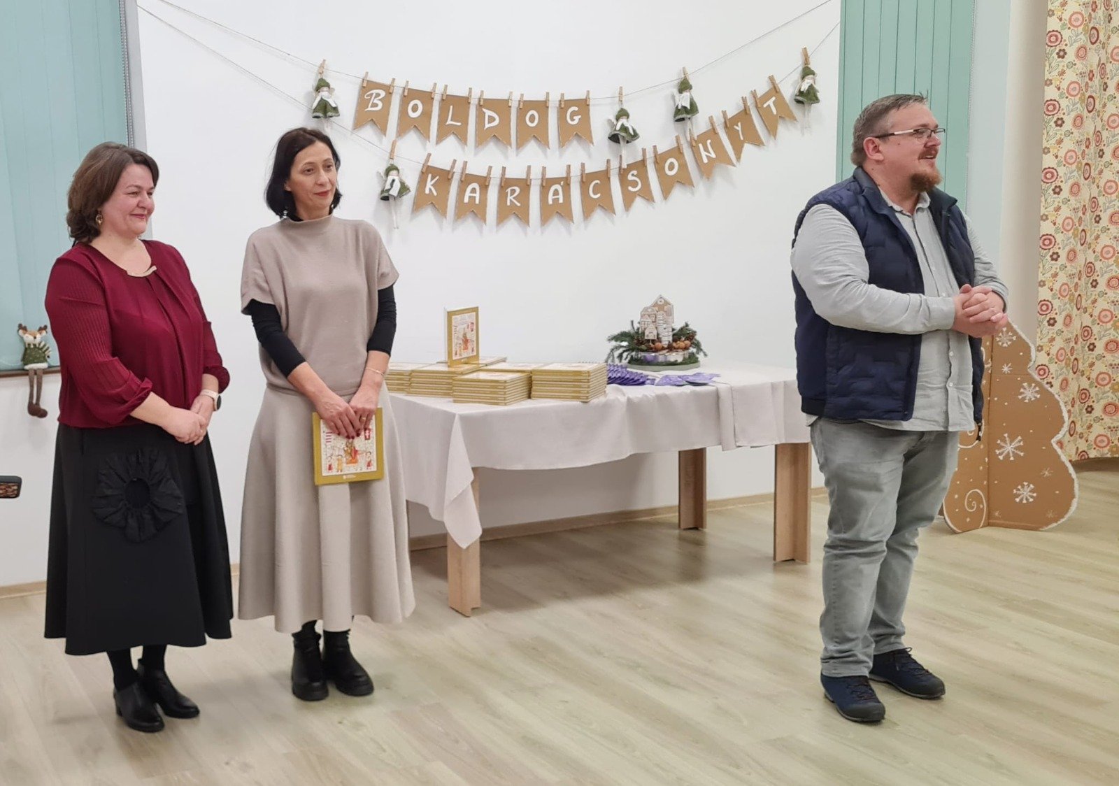 Ezután Szejke Ottilia, a Rákóczi Szövetség Szatmár Megyei Szervezetének elnöke szólította meg a nagycsoportos gyermekeket, megköszönte a kedves kis műsort, és mesélt nekik a könyvben olvasható érdekességekről, történetekről. A szülőkhöz fordulva Jókai Anna írónő szavait idézte: ,,Ha az ember nem az anyanyelvén beszél, egy icipicit hazugságra kényszerül mindig.” – köszönetet mondva a szülőknek, hogy annak idején magyar tannyelvű intézménybe íratták gyermekeiket, hogy aztán magyar tannyelvű oktatásban részesüljenek, így megadva a lehetőséget arra, hogy képességeiket a lehető legtermészetesebb közegben kamatoztathassák. Mindezek mellett kiemelte, mennyire fontos az, hogy az adventi időszakban lelassuljunk, és töltsünk minél több időt gyermekeinkkel.