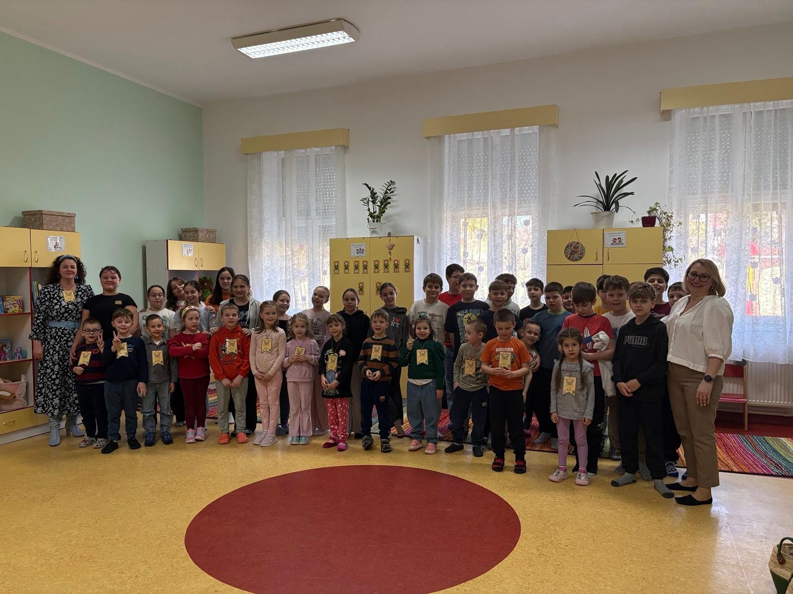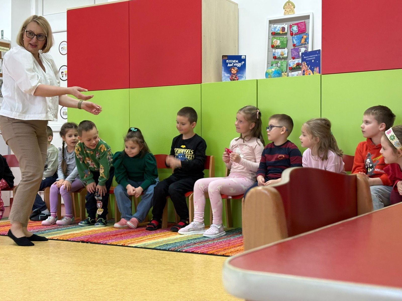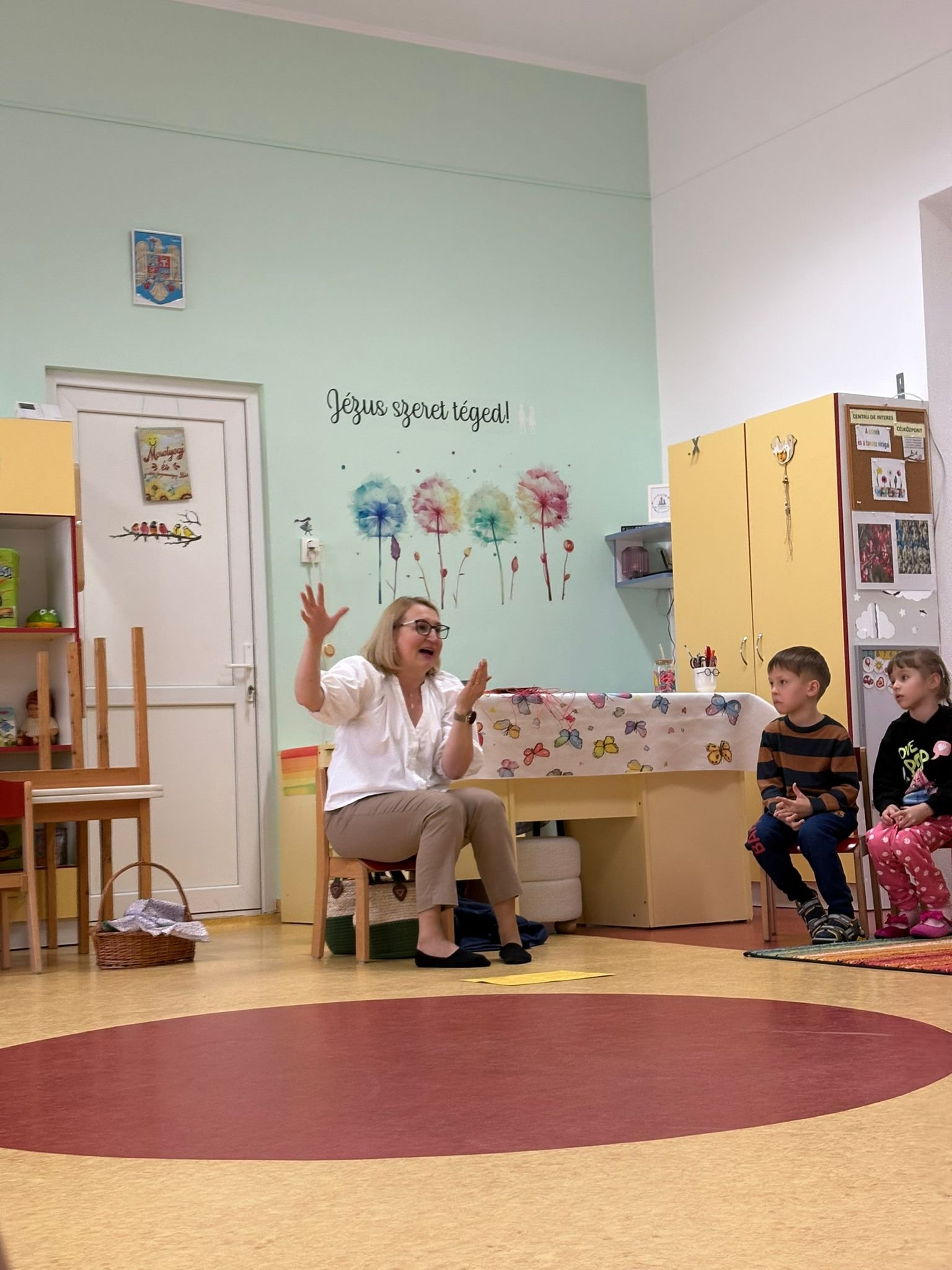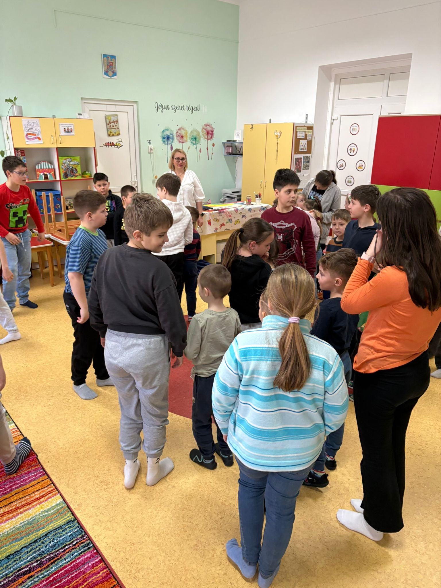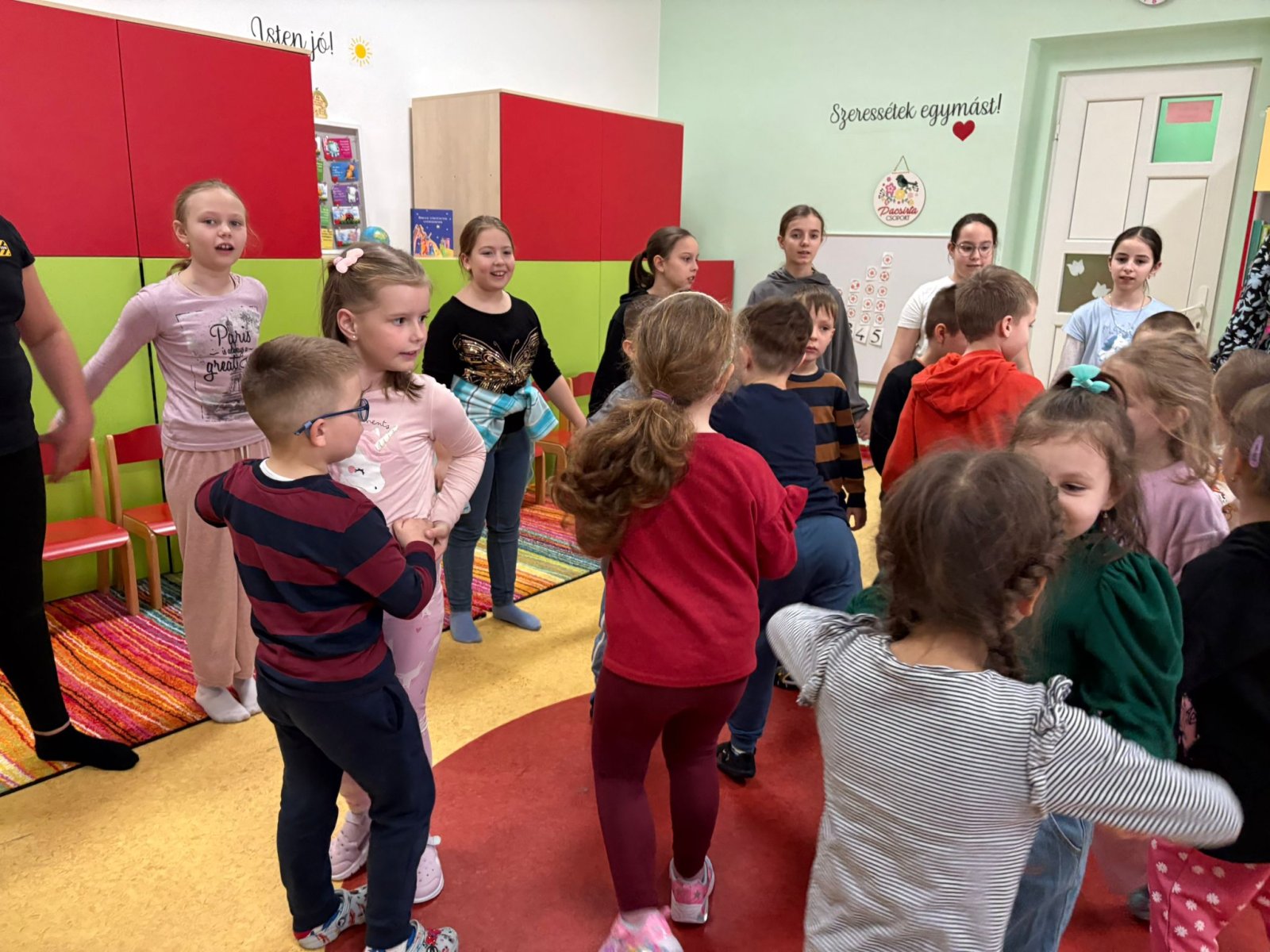A foglalkozás középpontjában a szeretet, a türelem, a békés szív és az egymásra figyelés állt. A történetek és játékok segítették az ovisokat abban, hogy bátrabban kapcsolódjanak be a közös élményekbe, miközben betekintést nyerhettek az iskolai élet hangulatába is. A programon az óvodásokkal együtt részt vett óvónőjük, Kiss Beáta is, aki örömmel kapcsolódott be a közös játékba.