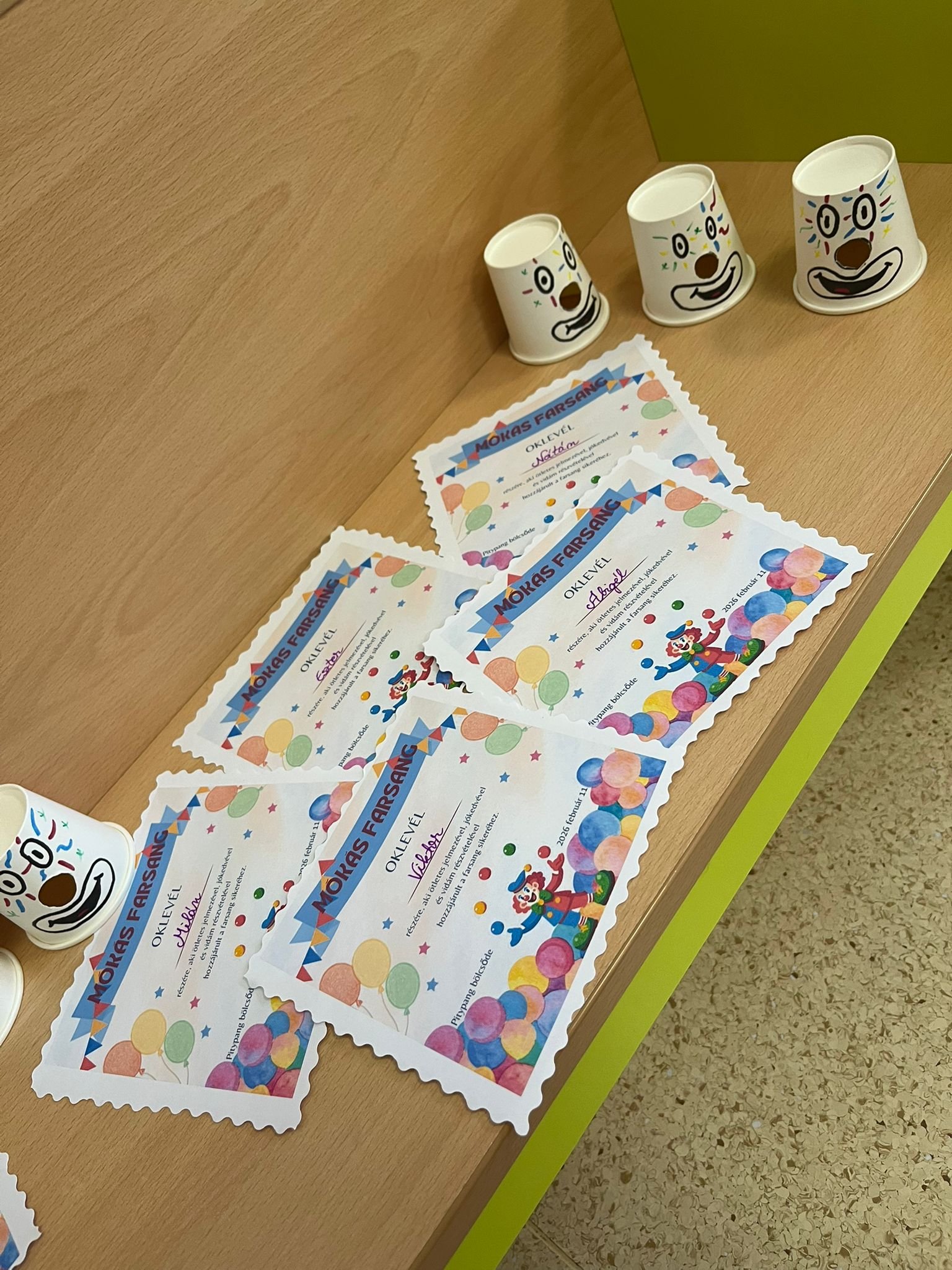 Természetesen a jutalom sem maradt el, a farsangi fánk elfogyasztása. A szép jelmezek jutalmazásaként minden gyermek egy kis bohóccal és egy emléklappal térhetett haza. A nap mókásan, vidáman és jó hangulatban telt kicsik, nagyok számára egyaránt!