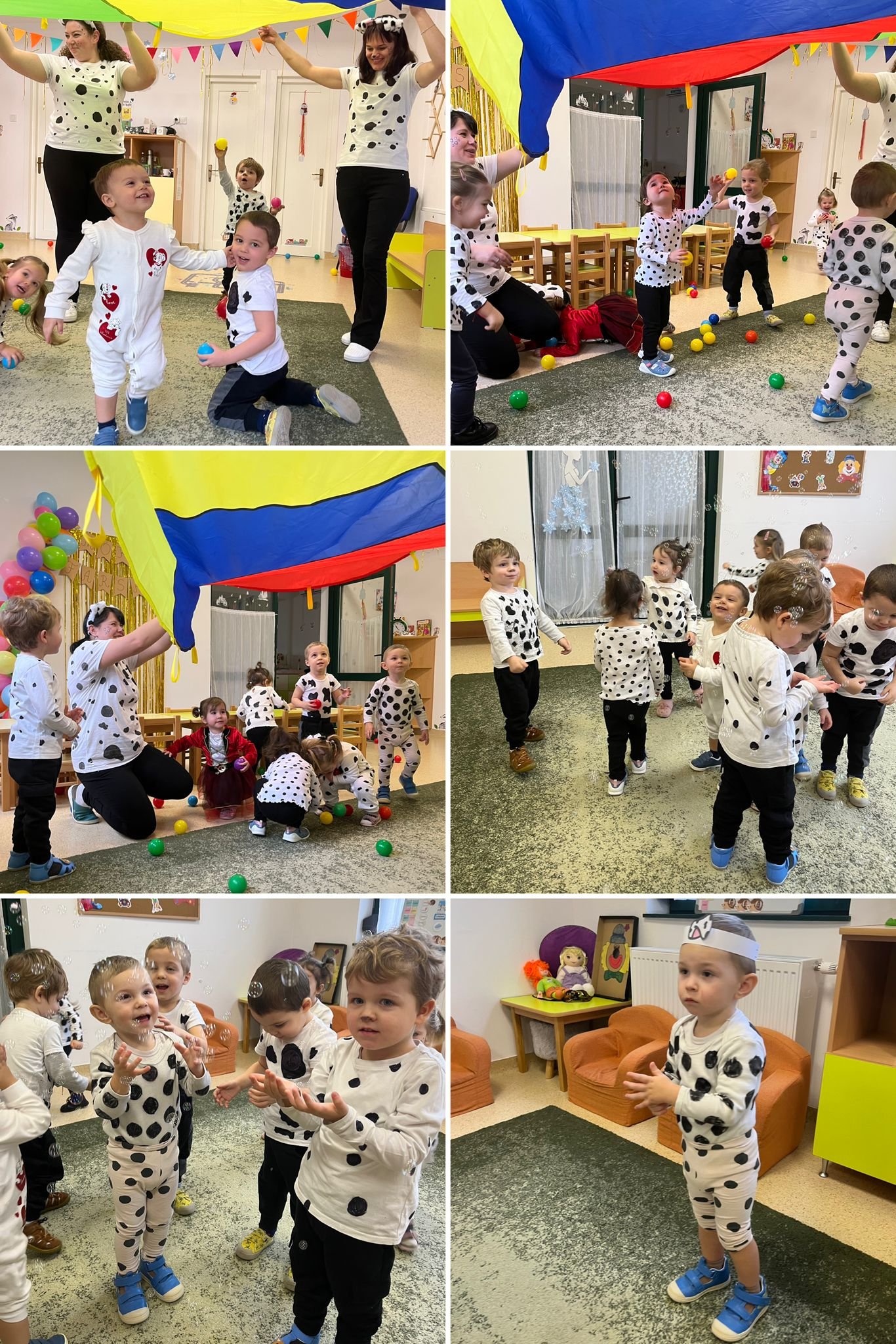 A nap azzal indult, hogy minden gyermek szép jelmezbe öltözött. Az óvónők, dadusok és az asszisztensnő dalmata jelmezben várták a gyerekeket, ezzel is megidézve A 101 kiskutya című mesefilmet. A folytatásban farsangi dalokra táncoltak és énekeltek közösen, majd három tevékenység várta a gyerekeket: ügyességi játék, bohóc haj díszítése, valamint esernyős labdatáncoltatás.