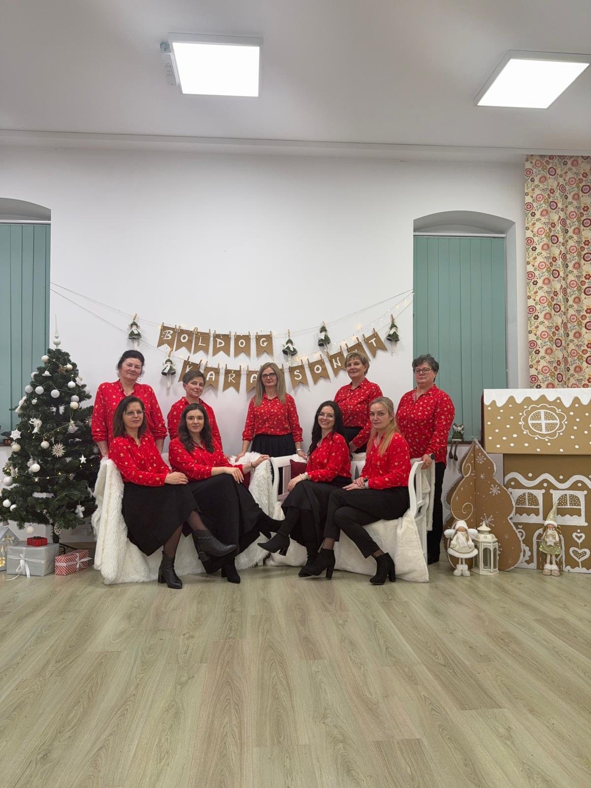 Ezt követte a legkisebbek műsora. Énekkel és mondókával köszöntöttek mindenkit a karácsonyfa körül. A gyermekek a mécsesekkel megvilágított teremben vidáman dúdoltak és mondókáztak, eszünkbe juttatva a régi idők karácsonyait.