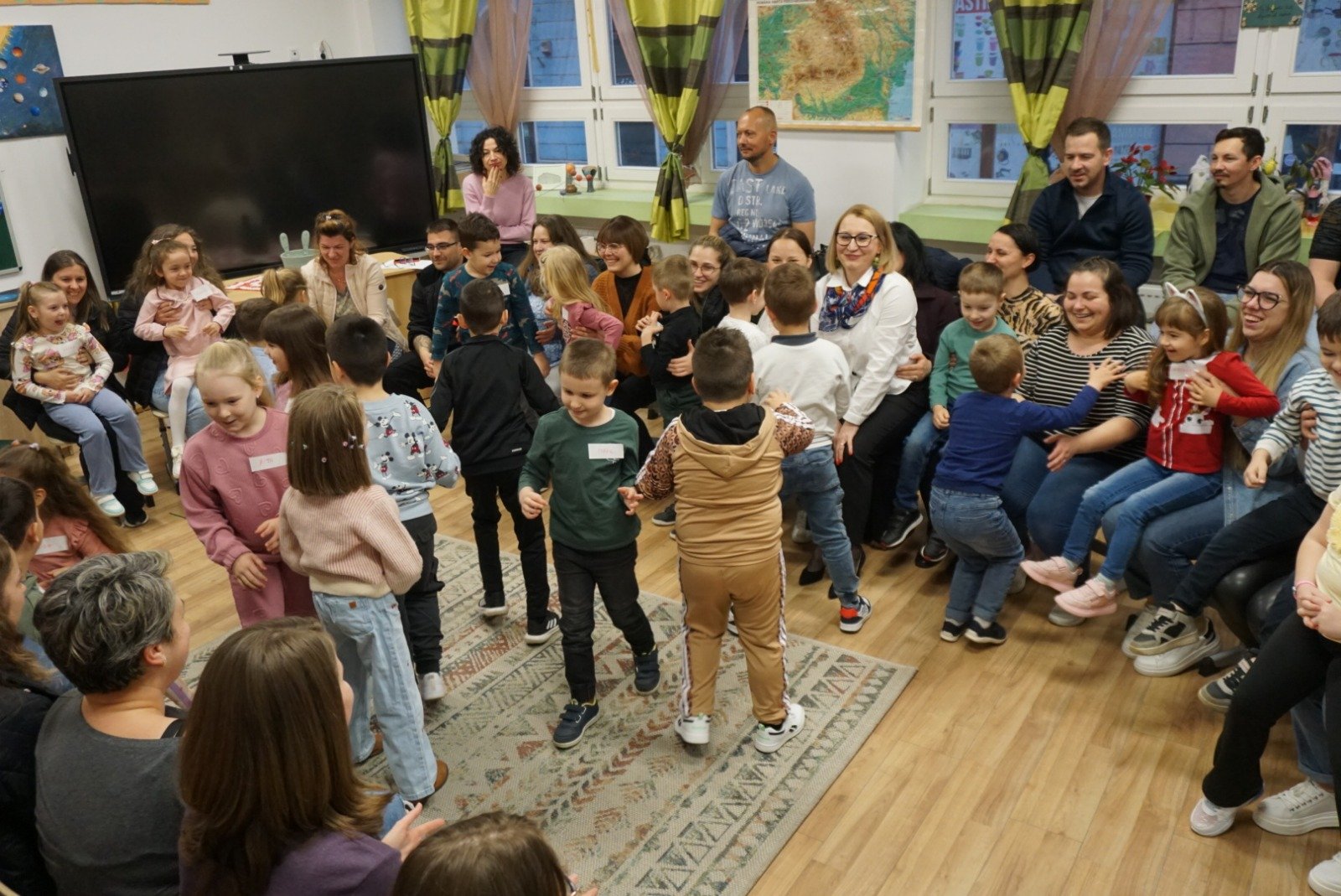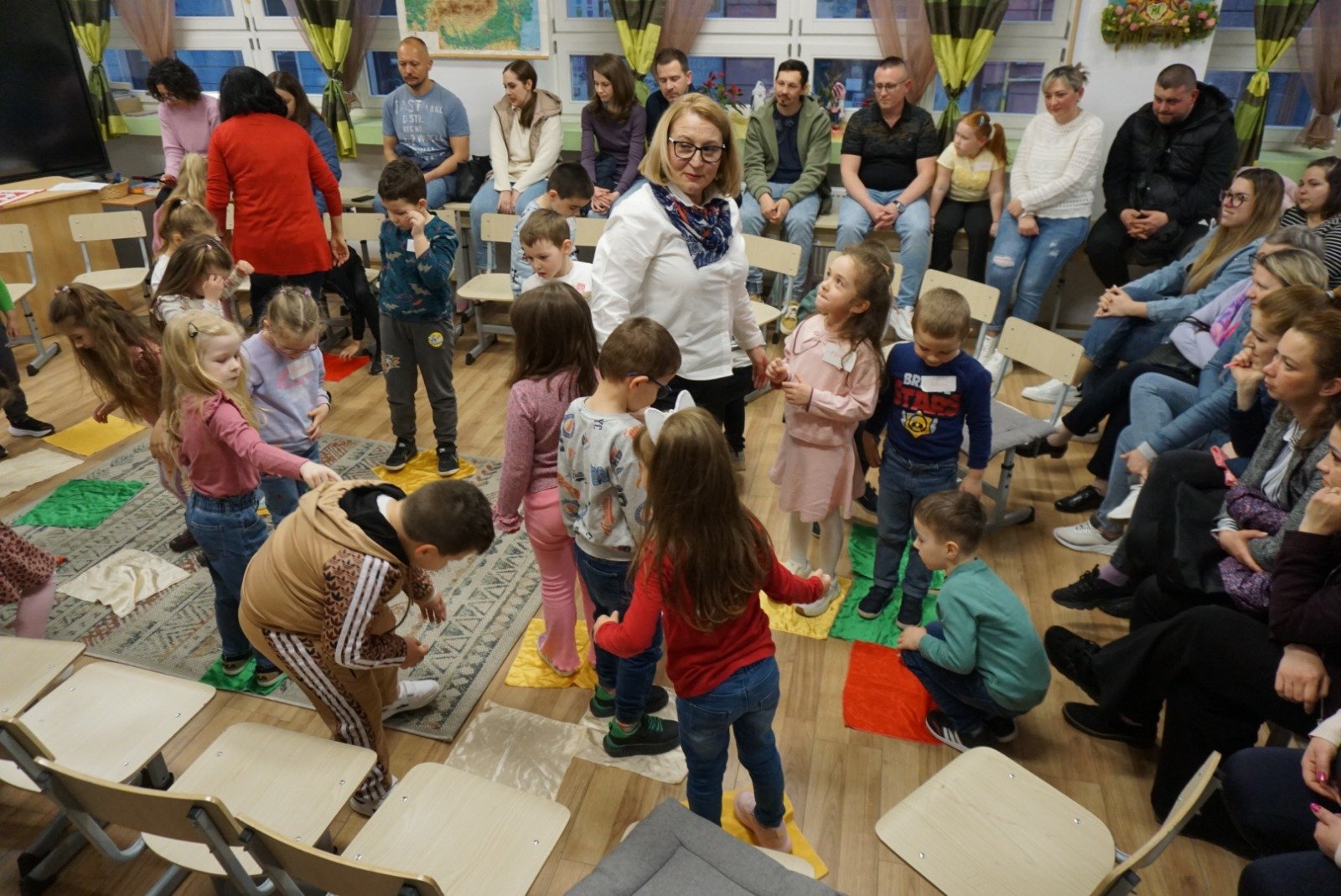 A délután varázslatát az interaktív mesemondás koronázta meg. A tanító néni lágy zenei kísérettel kezdte a mesét, amely szinte észrevétlenül repítette a gyerekeket a képzelet birodalmába. A „varázsitalnak” köszönhetően a színes selymek életre keltek a gyerekek kezében: hol karkötővé, nyakkendővé, habverővé vagy vízsugárrá váltak, hol pedig varázsszőnyeggé, amelyen a mesebirodalom tájaira utazhattak. Máskor köpenyekké vagy csodás kapukká alakultak, új kalandok felé nyitva a fantázia világát. A gyerekek mozdulataikkal és ötleteikkel aktívan formálták a történetet, így mindannyian részesei lettek a varázslatnak.
