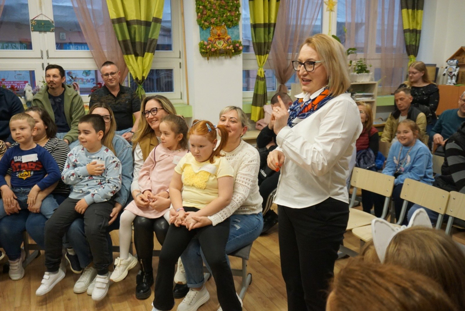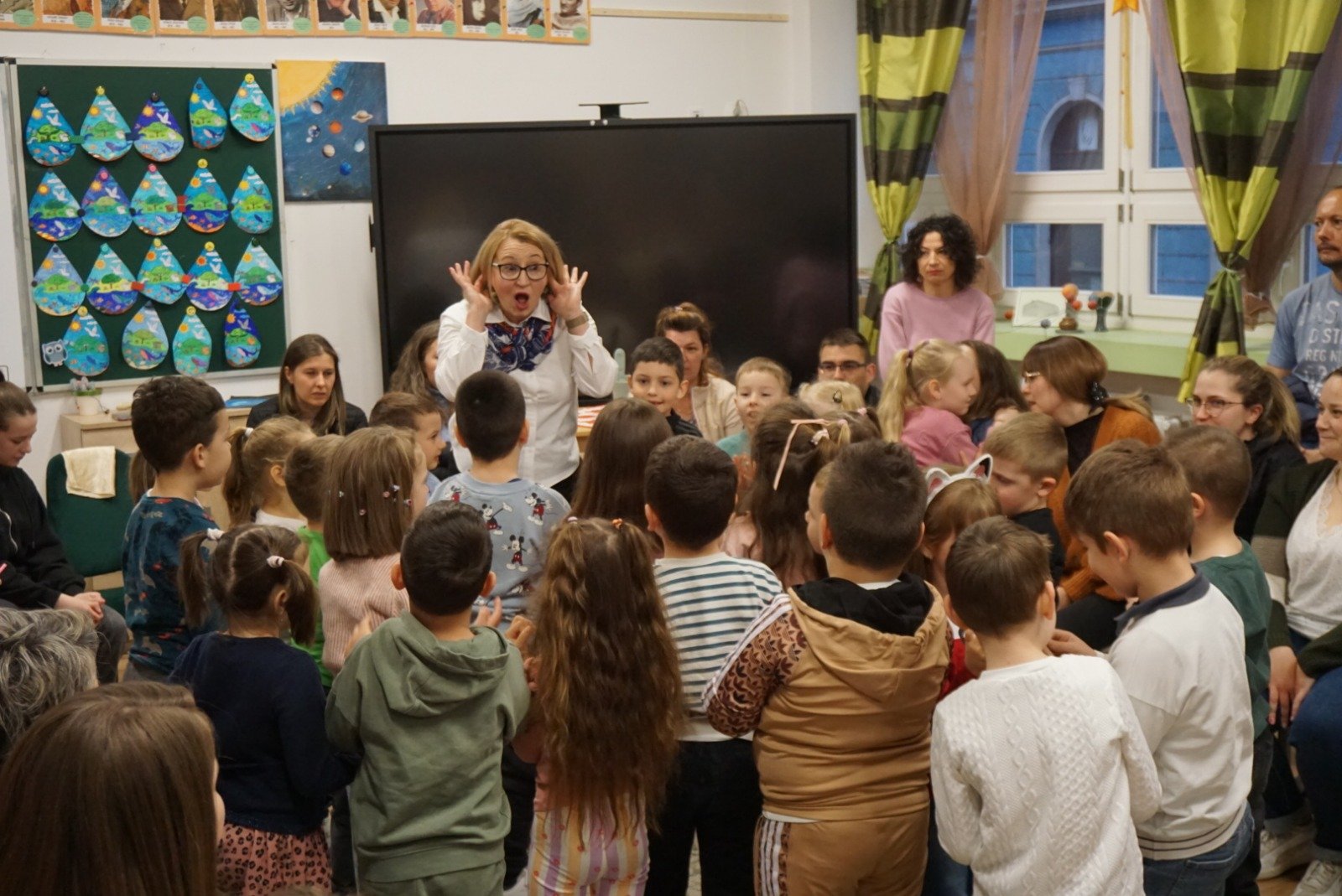 A tanító néni drámapedagógiai foglalkozást vezetett, amely mintha egy mesebeli híd lett volna a gyerekek képzelete és az iskola világa között. Meggyőződése, hogy a drámapedagógia minden gyermekhez utat talál, és ezt a hitét minden mozdulatával, szavával átadta. A gyerekek bátran merültek el a tevékenységekben, nevetésük betöltötte a termet, miközben játékosan próbálták ki magukat különböző helyzetekben.
