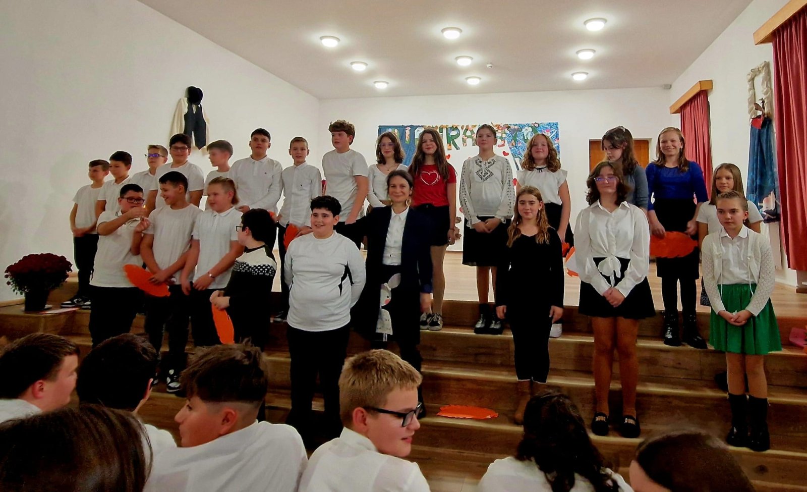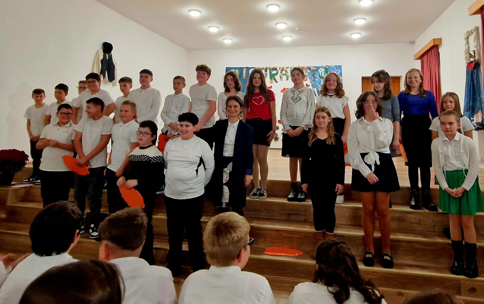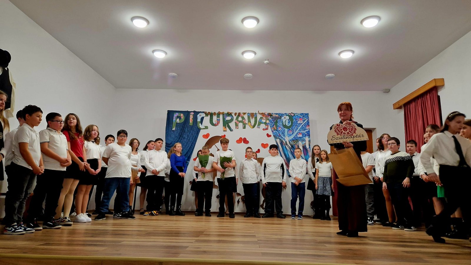 A hatodikosok műsora – Higyed Gyöngyi tanárnő irányításával – mintha egy kis fáklya lett volna, amelyet óvatosan nyújtottak át az ötödikeseknek. Ők is a szeretetről meséltek – arról a szeretetről, amely nem fogy el akkor sem, amikor a gyerekek egy új fejezethez érkeznek. A zongorakíséretet Nagy Máté játszotta; játéka felemelte, körbeölelte az ünnepség minden pillanatát.