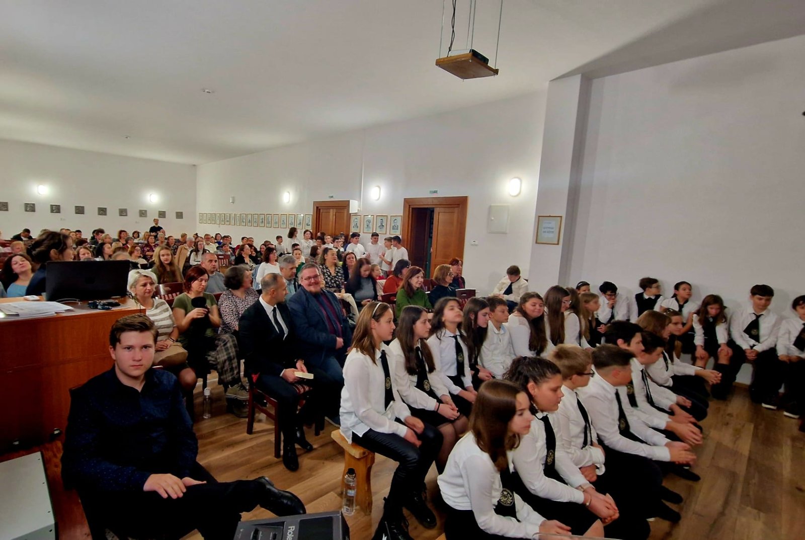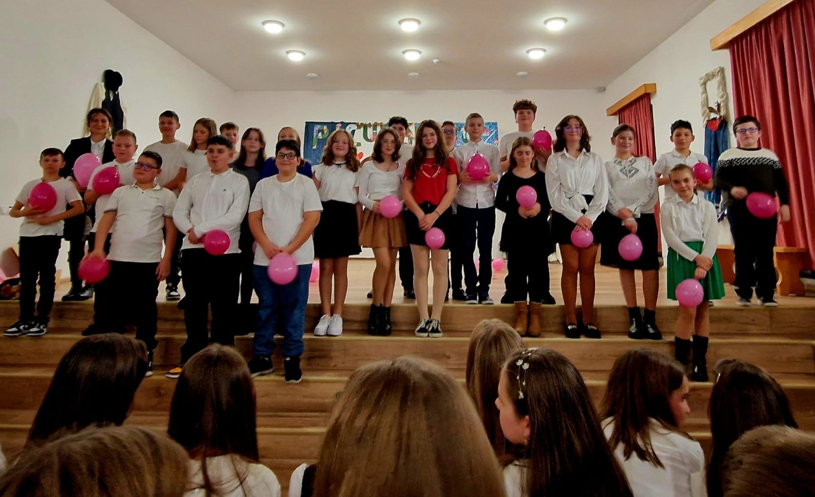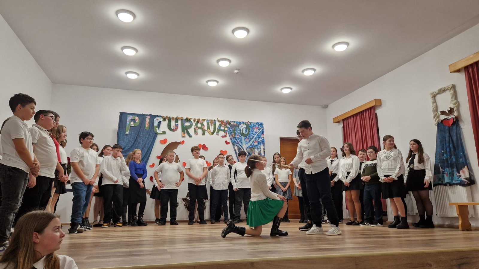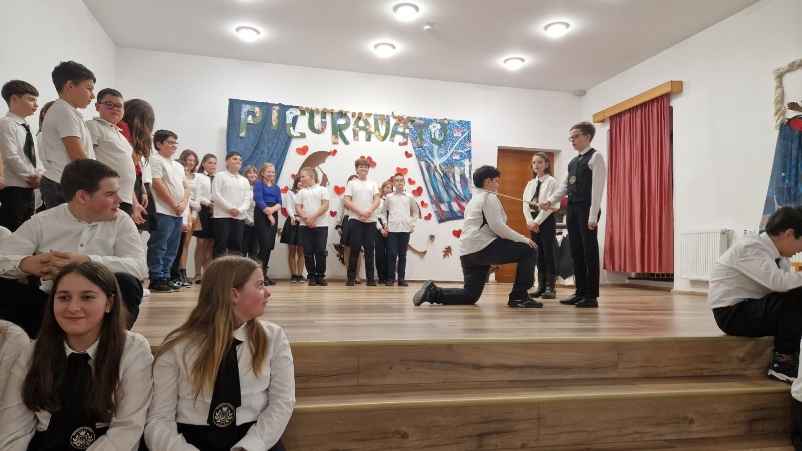 A hatodikosok műsora – Higyed Gyöngyi tanárnő irányításával – mintha egy kis fáklya lett volna, amelyet óvatosan nyújtottak át az ötödikeseknek. Ők is a szeretetről meséltek – arról a szeretetről, amely nem fogy el akkor sem, amikor a gyerekek egy új fejezethez érkeznek. A zongorakíséretet Nagy Máté játszotta; játéka felemelte, körbeölelte az ünnepség minden pillanatát.