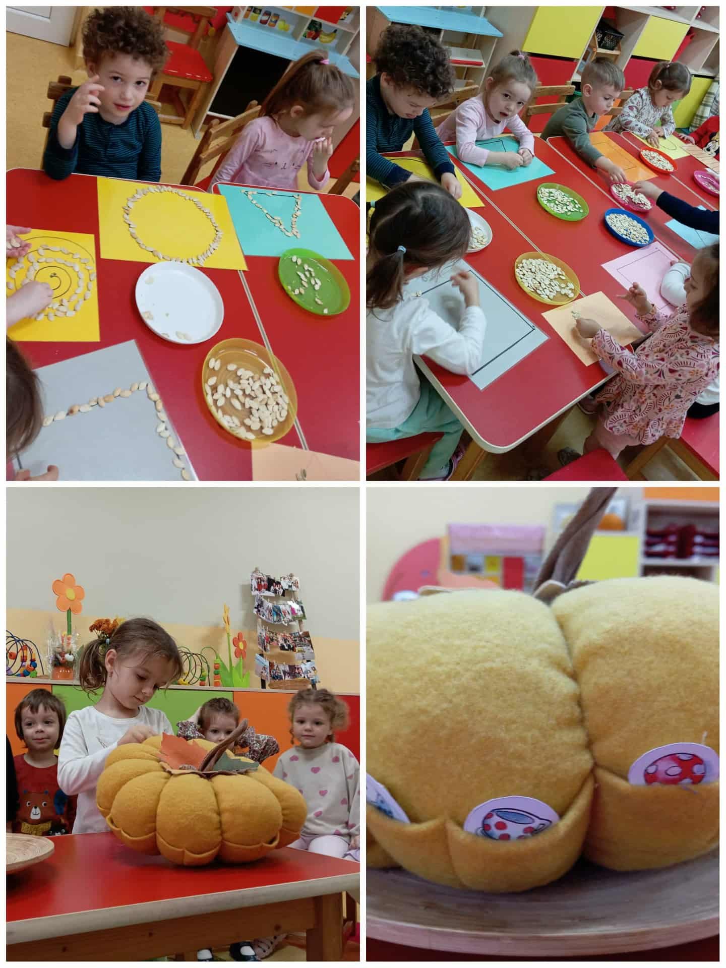 A gyerekek tökmagot válogattak más magvak közül, tököt gurítottak, megkeresték egymás óvodai jelét. Ahogyan a növénynek gondoskodásra van szüksége a fejlődéséhez, úgy a gyermekeknek is biztosítani kell a megfelelő környezetet az érzelmi és értelmi fejlődéséhez.