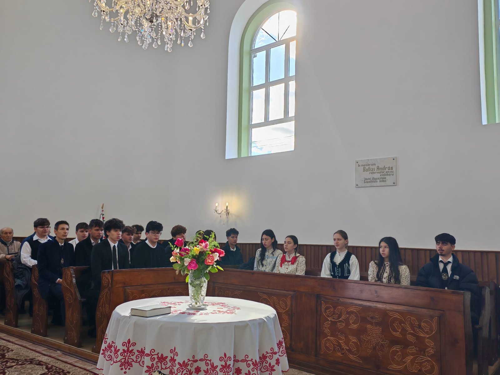 A három tizedik osztály osztályfőnökeikkel (A X.A filológia-teológia szakirányú osztály osztályfőnöke Szeremi Júlia, a X.B gazdasági szakirányú osztályé Kiss Eszter Boróka és a X.C matematika-természettudományok szakirányú osztály osztályfőnöke Schefler Enikő), Póti Eduárd Jánossal, a Református Gimnázium igazgatójával és Nt. Varga Szilárd- Csabával, iskolánk ifjúsági lelkészével ünnepi istentiszteleten vettek részt a batizi református templomban, ahol megemlékeztek az egykori, a harcok áldozatául esett diáktársaikról. Az ünnepi műsort szerkesztették és a diákokat felkészítették Mátyás Erika zenetanár és Varga-Bressel Christiane magyartanár.